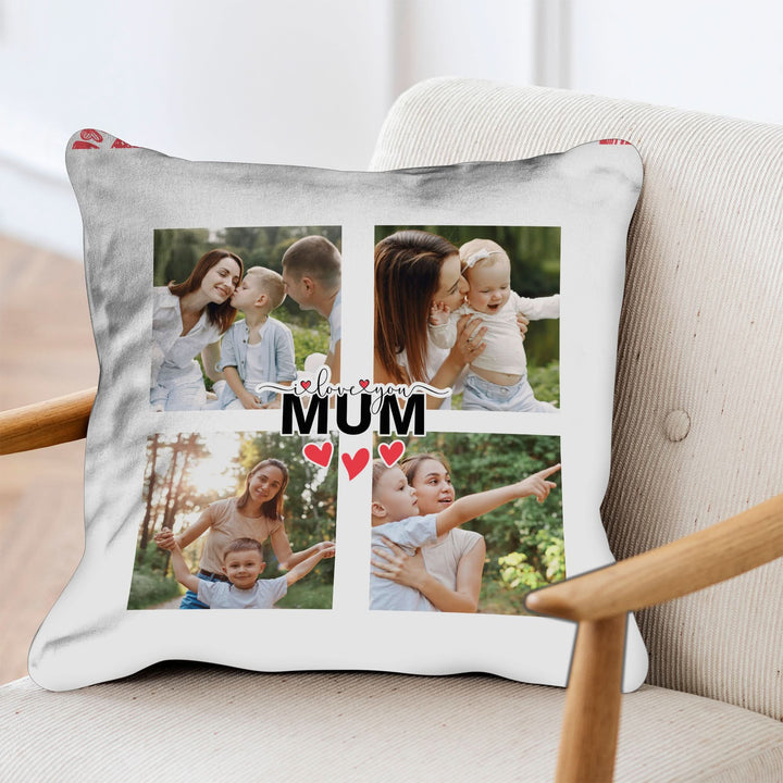 I Love You Mum - 4 photos Personalised Cushion - Two Sizes