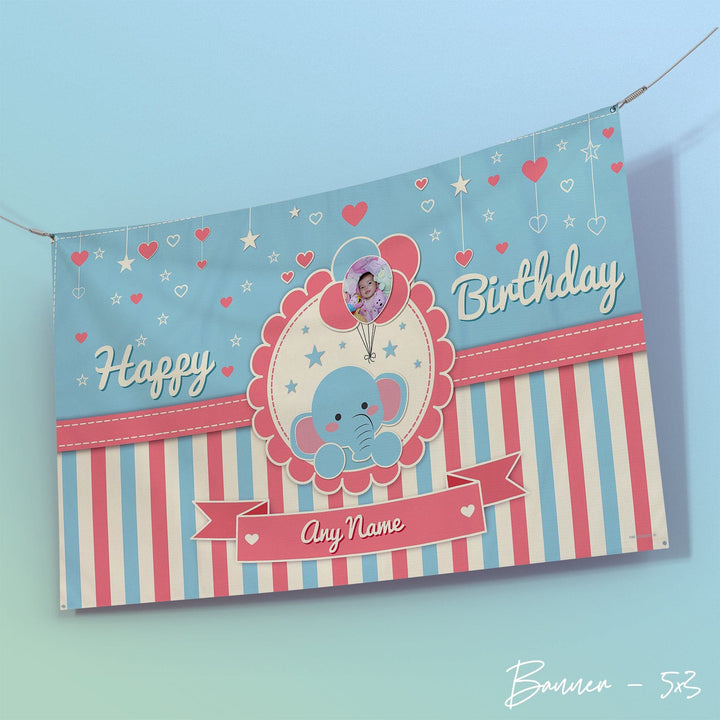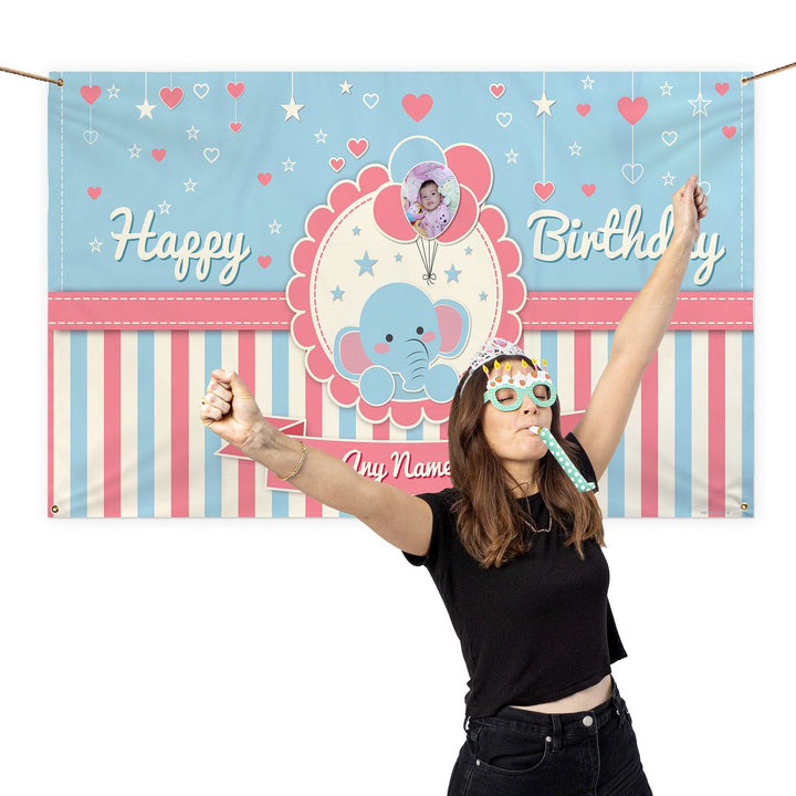 Kids Elephant Birthday Banner - 5ft x 3ft
