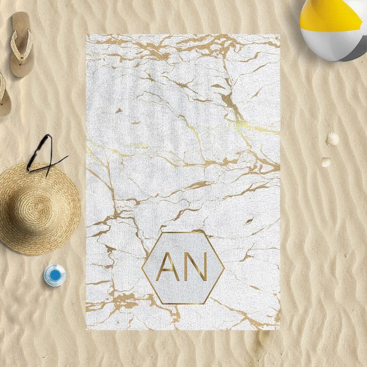 Marble Gold Initial - Personalised Large Lightweight, Microfibre Beach Towel
