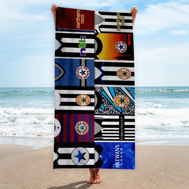 Our beach towels are handcrafted here in the UK using 300gsm microfibre towelling, which is lighter and more absorbent than cotton towels.