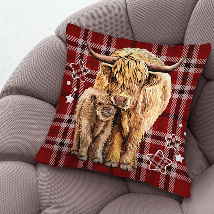 Pair Of Cows - Red Check - 26cm x 26cm - Personalised Cushion