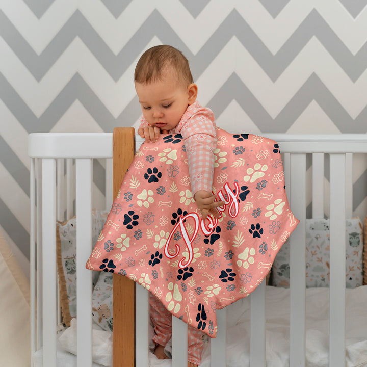 Paw Prints - Custom Colour - Personalised Extra Soft Luxury Baby Blanket - 75cm x 75cm