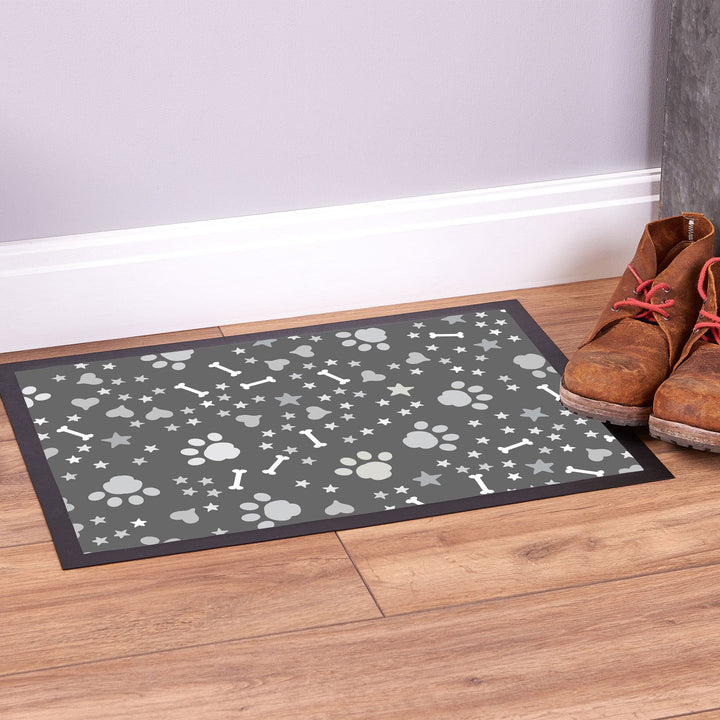 Personalised Pet Bowl Mat - Paw Prints Grey