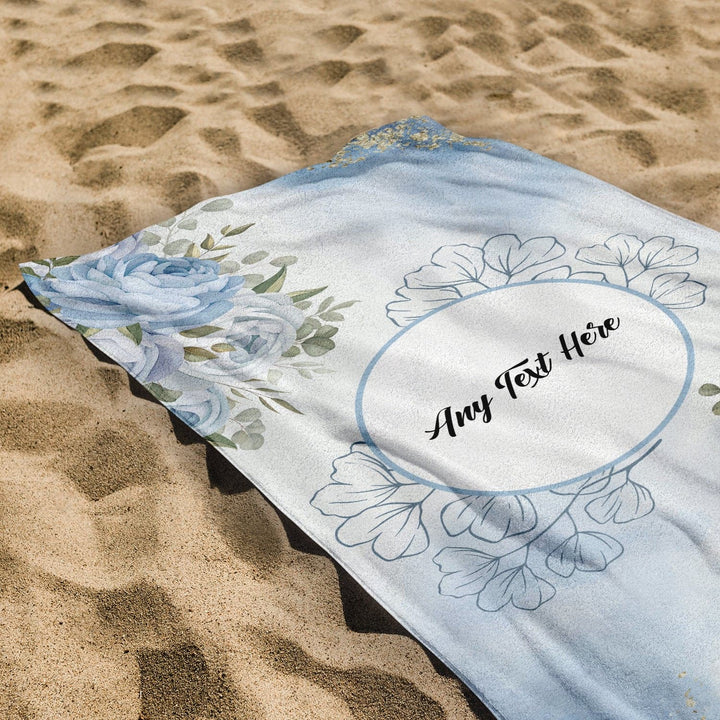 Personalised Lightweight, Microfibre Beach Towel - Blue Watercolour Rose