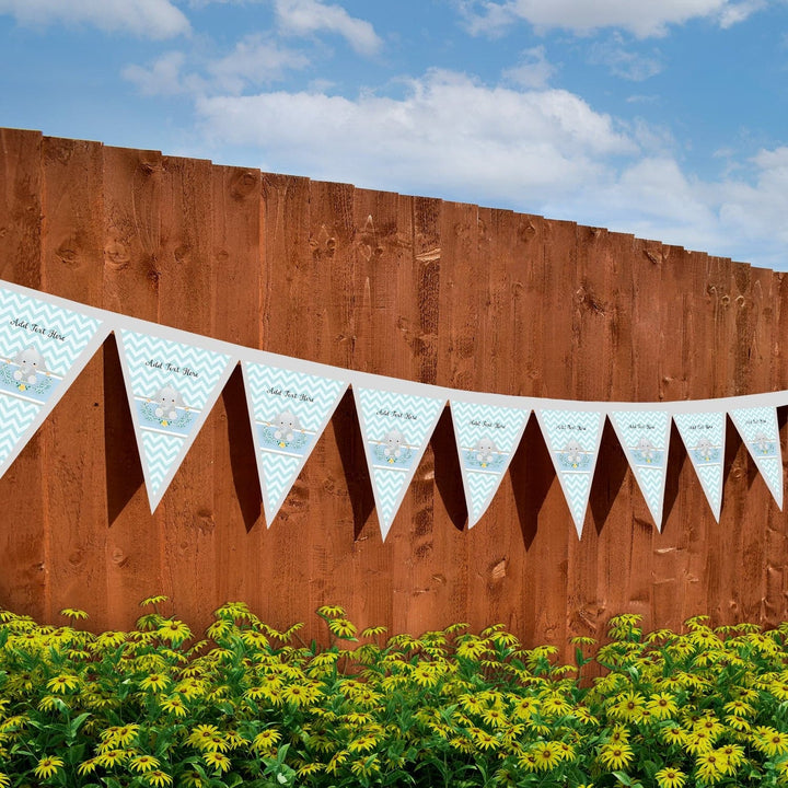Personalised Blue Baby Elephant- 3m Fabric Bunting With 15 Individual Triangles