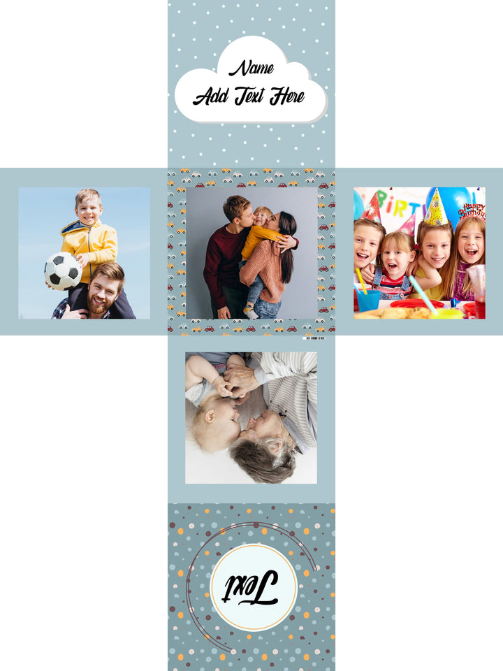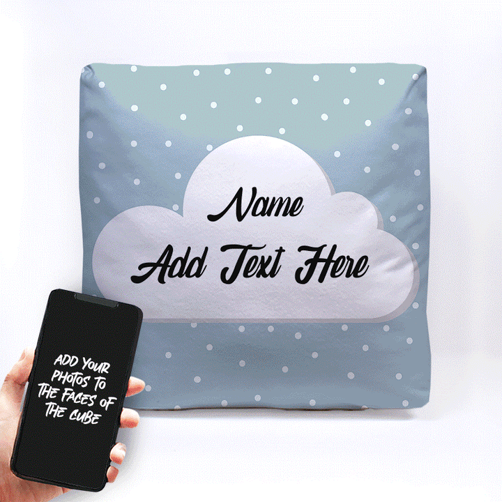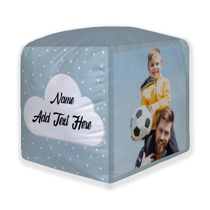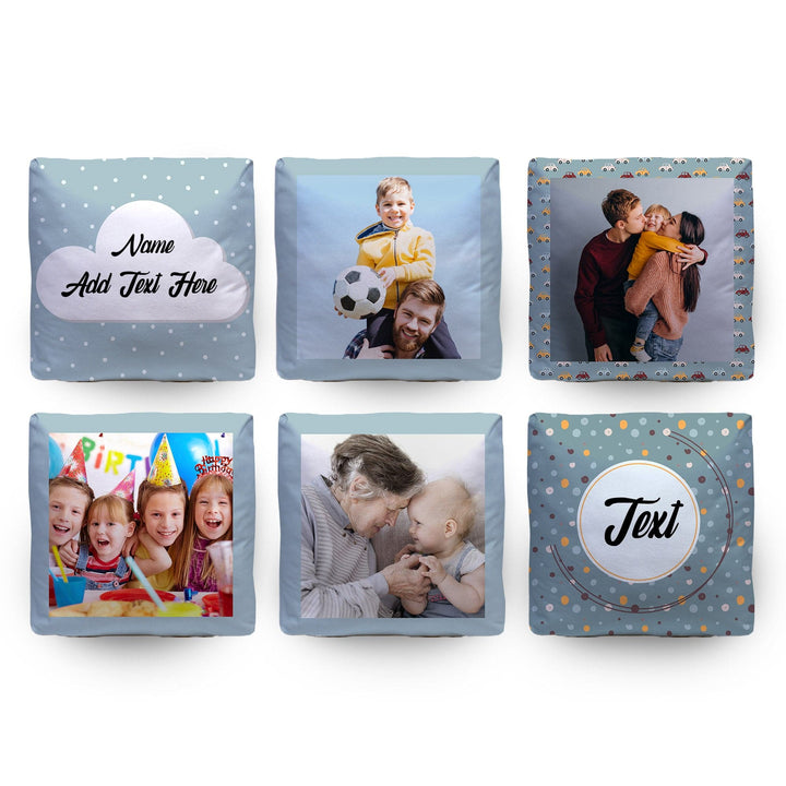 Personalised Blue Pattern Photo Cube Cushion - Two Sizes