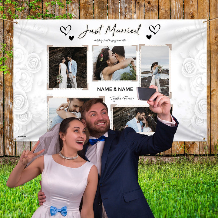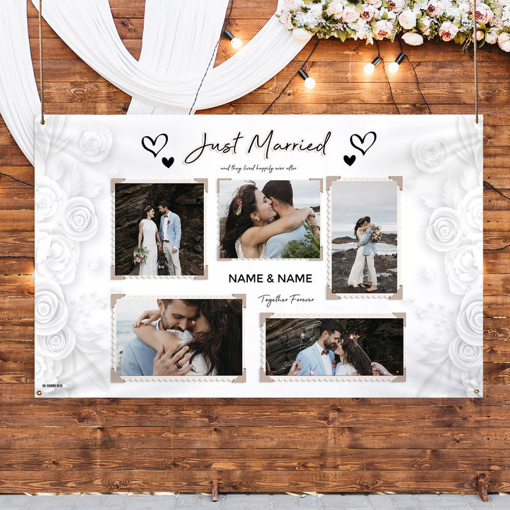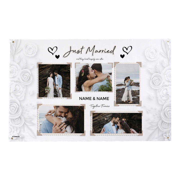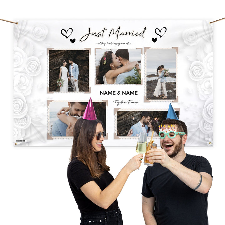 Personalised Fabric Photo Banner 5ft x 3ft - Wedding Paper Roses