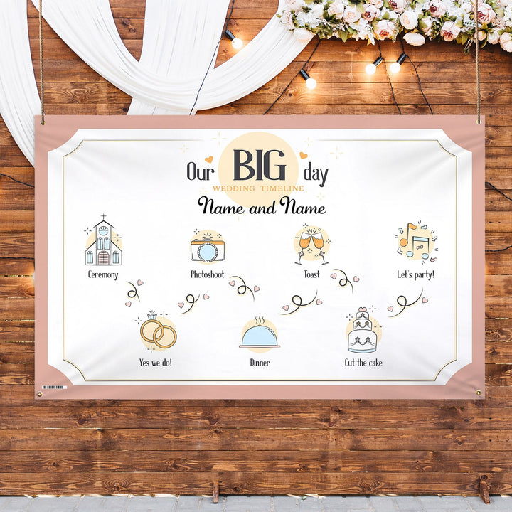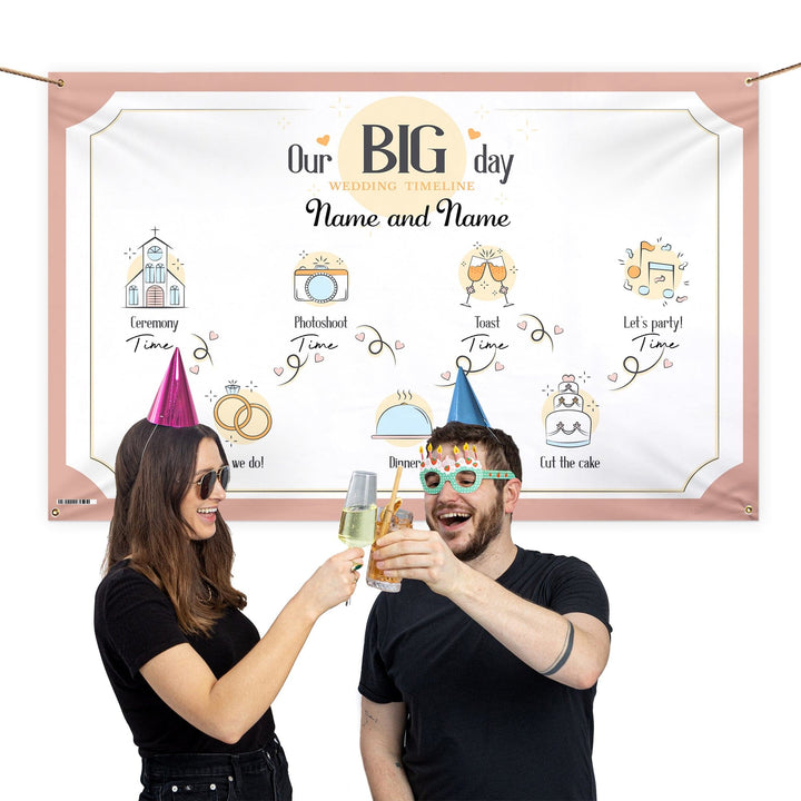 This personalised banner is a great addition to your upcoming wedding! Edit the text and add your names or share your wedding timeline.