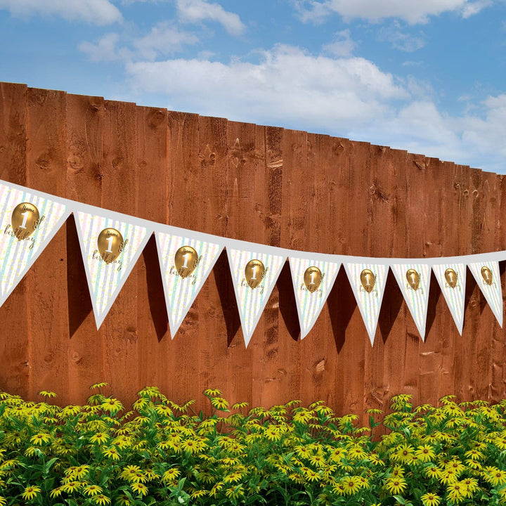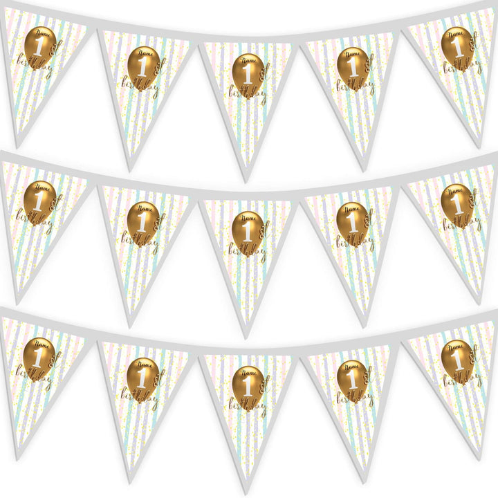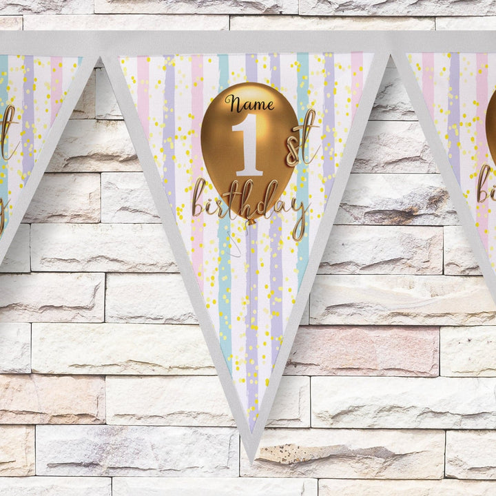 Personalised First Birthday - 3m Fabric Bunting With 15 Individual Triangles
