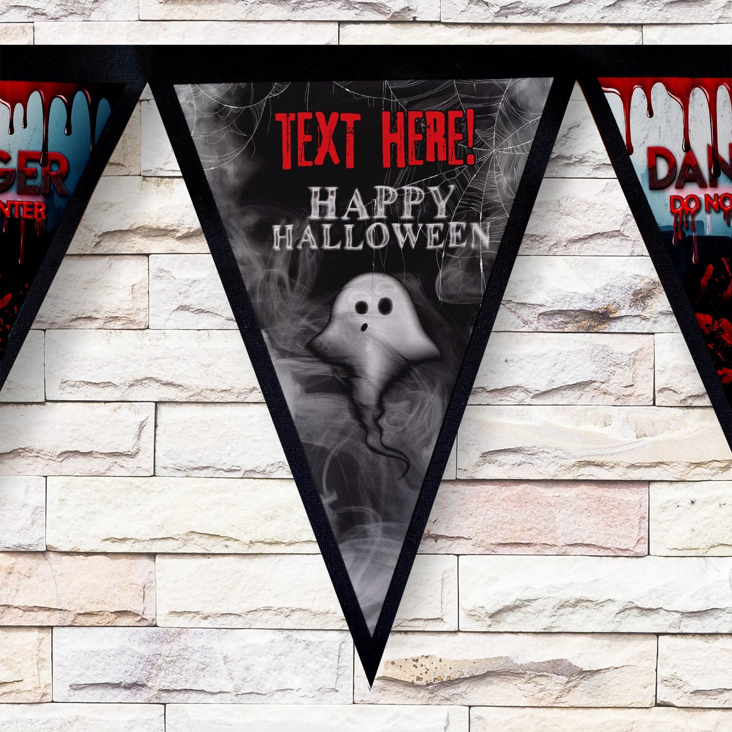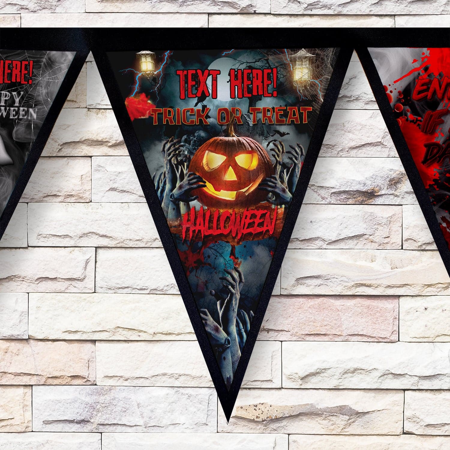 Personalised Halloween Spooky Scene - 3m Fabric Bunting With 15 Individual Triangles