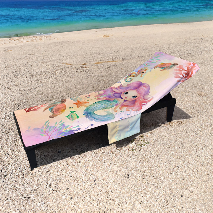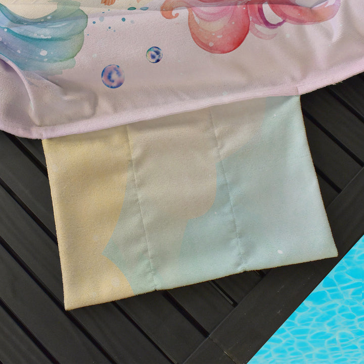 Personalised Pastel Mermaid - Full Length Sun Lounger Towel with Pockets