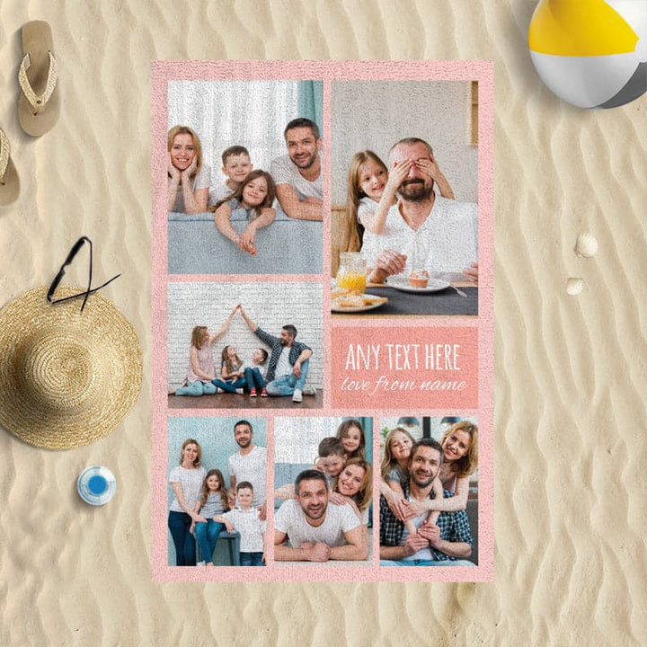Personalised Lightweight, Microfibre Photo Large Beach Towel | 6 Photo Collage Pink