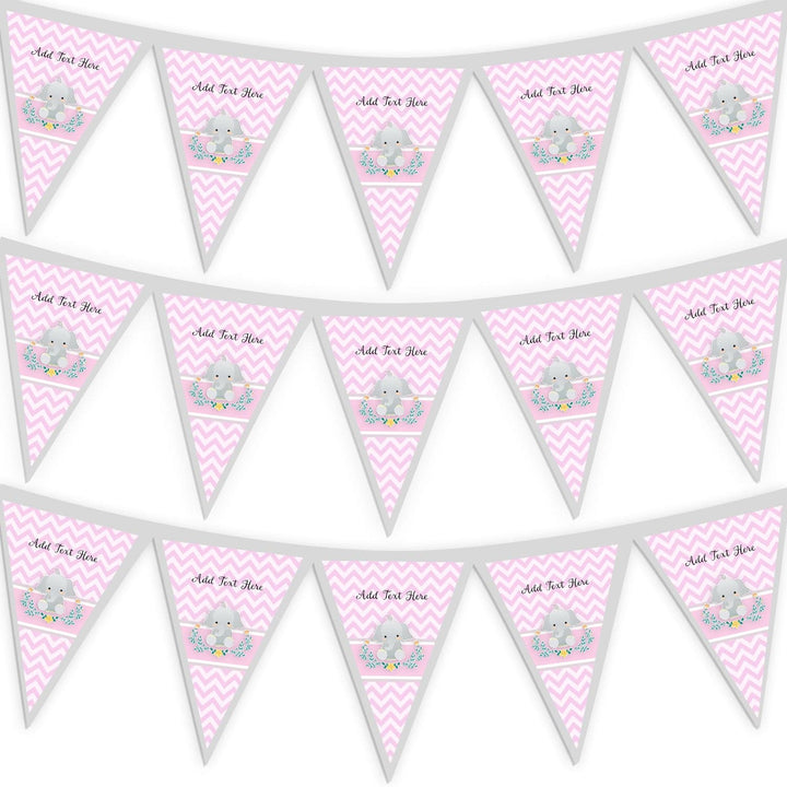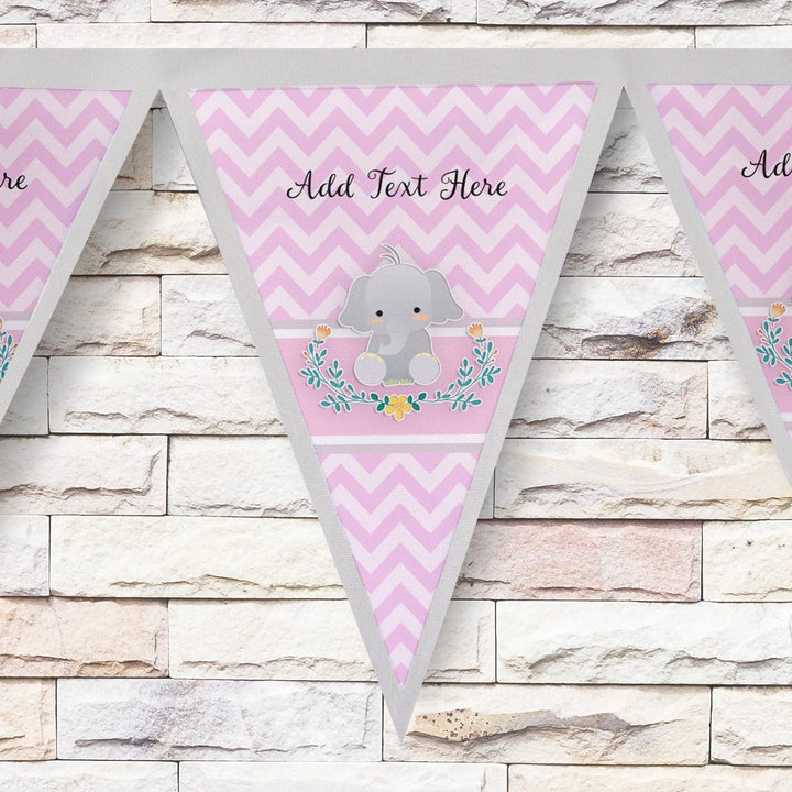 Personalised Pink Baby Elephant- 3m Fabric Bunting With 15 Individual Triangles
