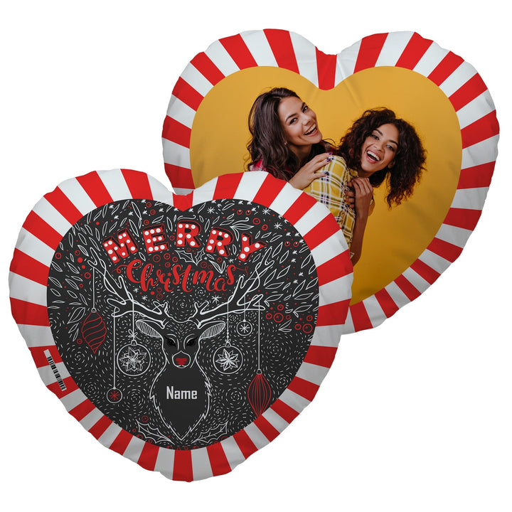 Personalised Rudolph Candy Cane - Heart Shaped Photo Cushion