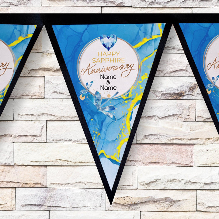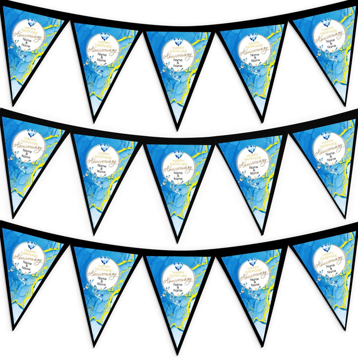 Personalised Sapphire Anniversary - 3m Fabric Bunting With 15 Individual Triangles