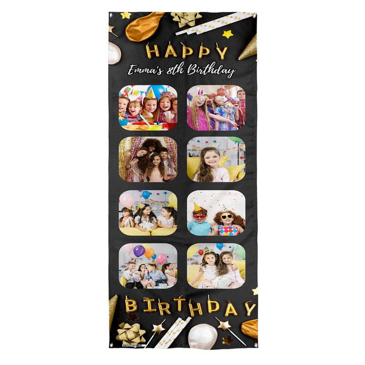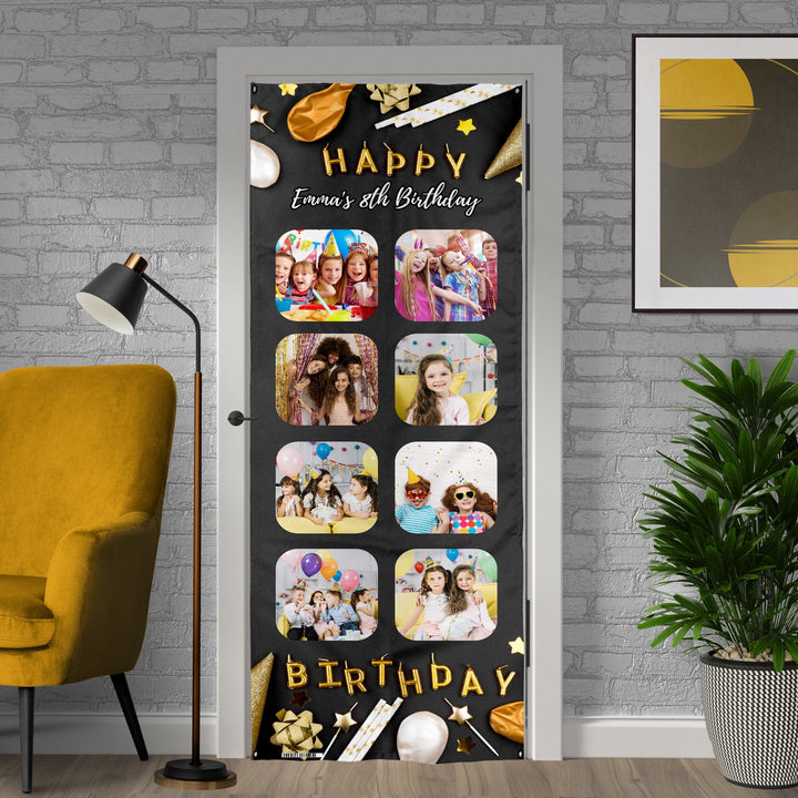 Personalised Text - Gold Party - Birthday 12 Photo Door Banner