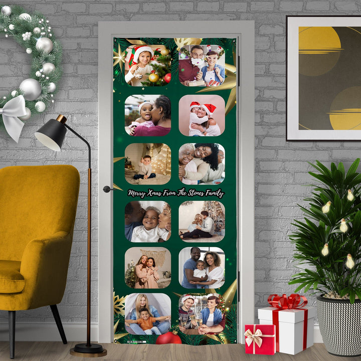 Personalised Text - Green 12 Photo - Christmas Door Banner