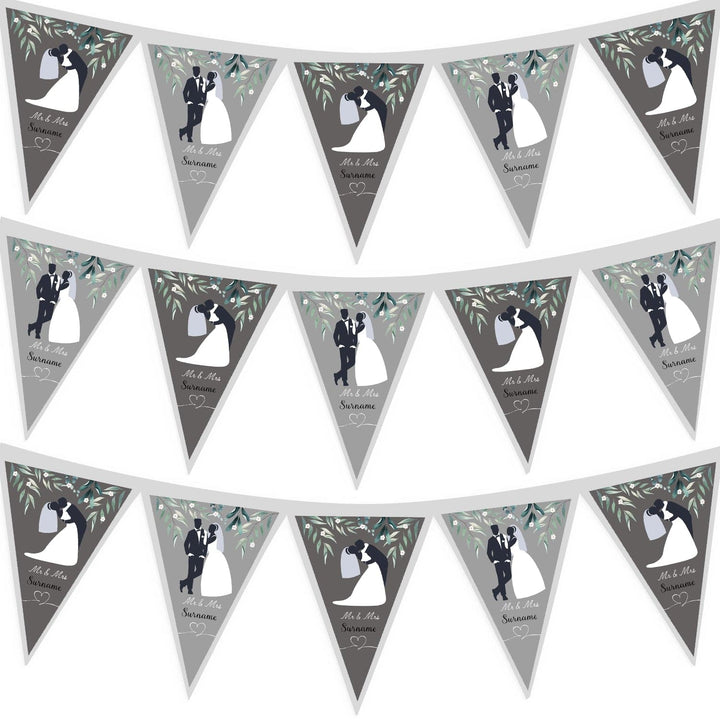 Personalised Wedding Couple - 3m Fabric Bunting With 15 Individual Triangles