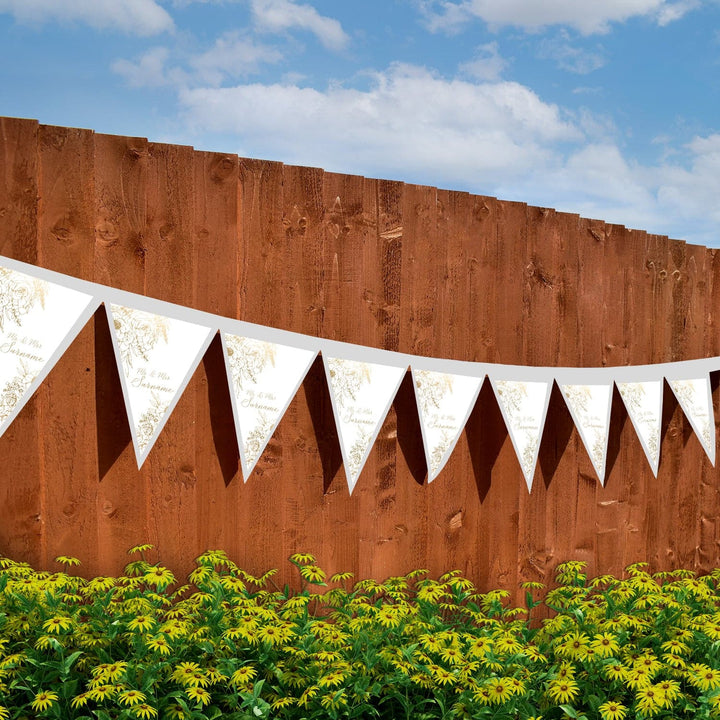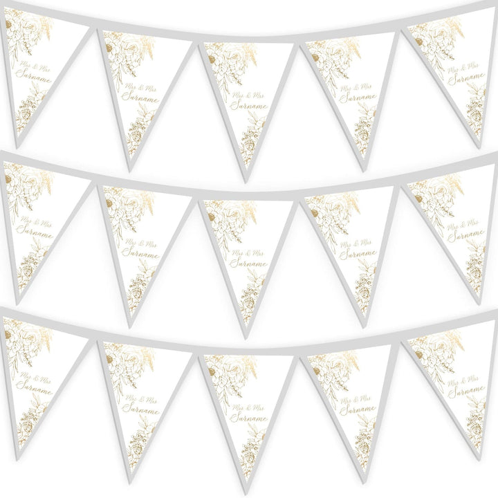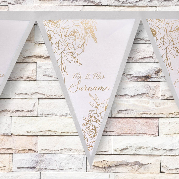 Personalised Wedding - Gold Floral Outline - 3m Fabric Bunting