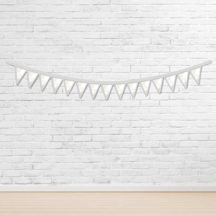 Personalised Wedding - Gold Floral Outline - 3m Fabric Bunting With 15 Individual Triangles