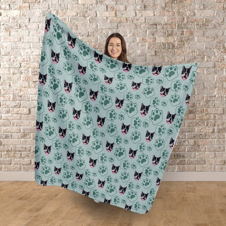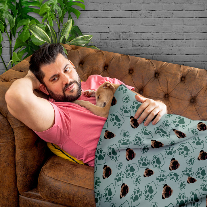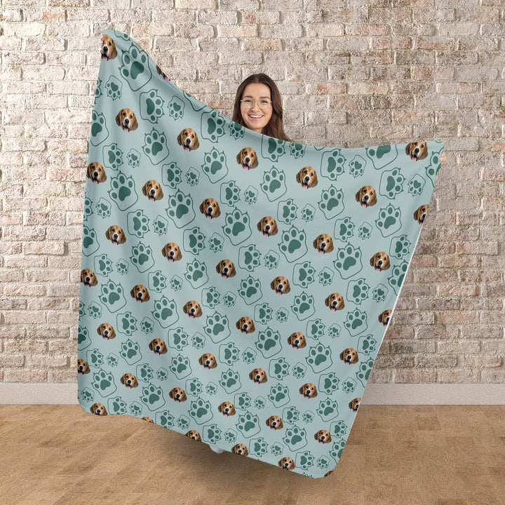 Pet Face Pattern - Minty Paws Print - Fleece Blanket 150cm x 150cm