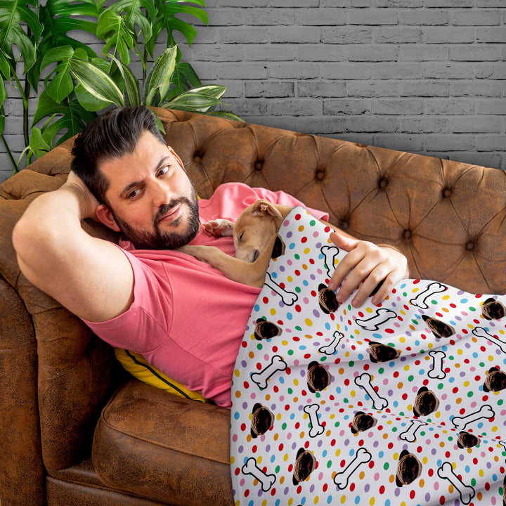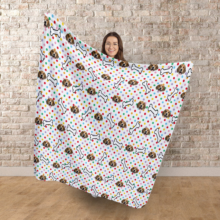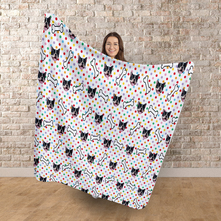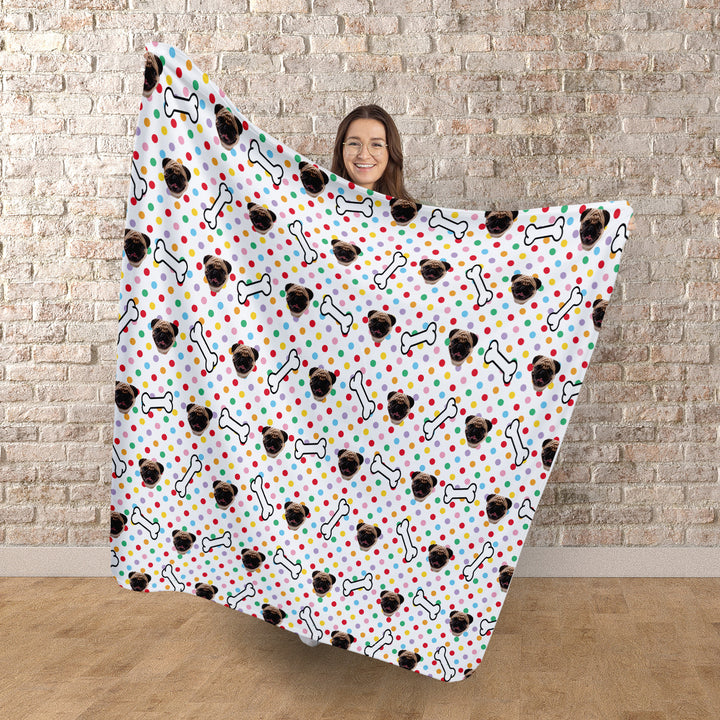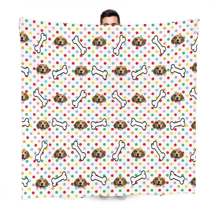 Pet Face Pattern - Multicoloured Polka Dots Print - Fleece Blanket 150cm x 150cm