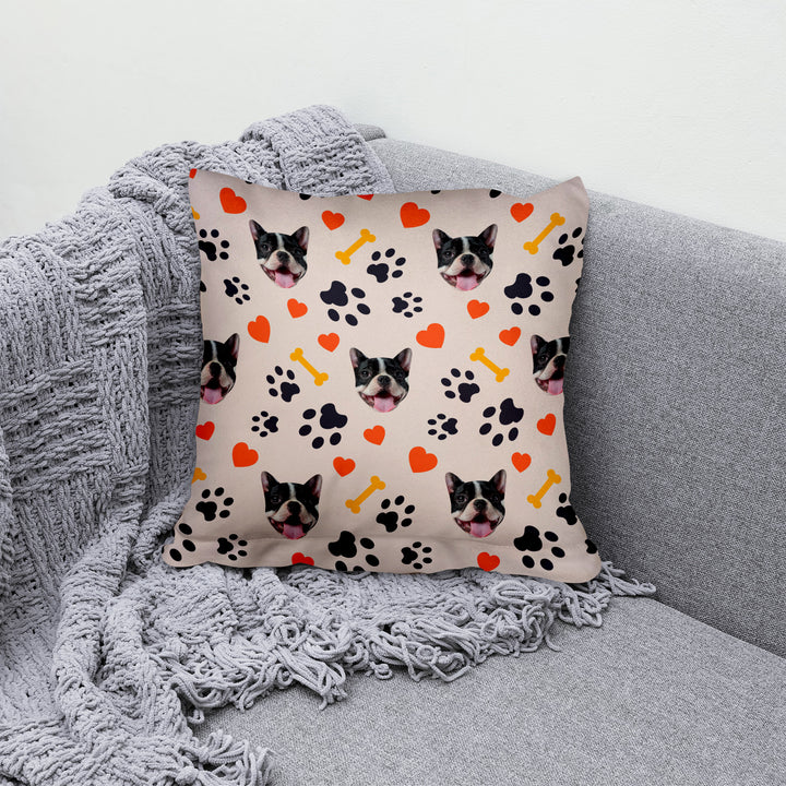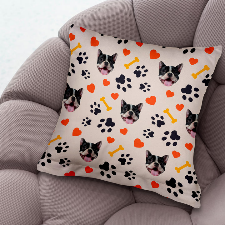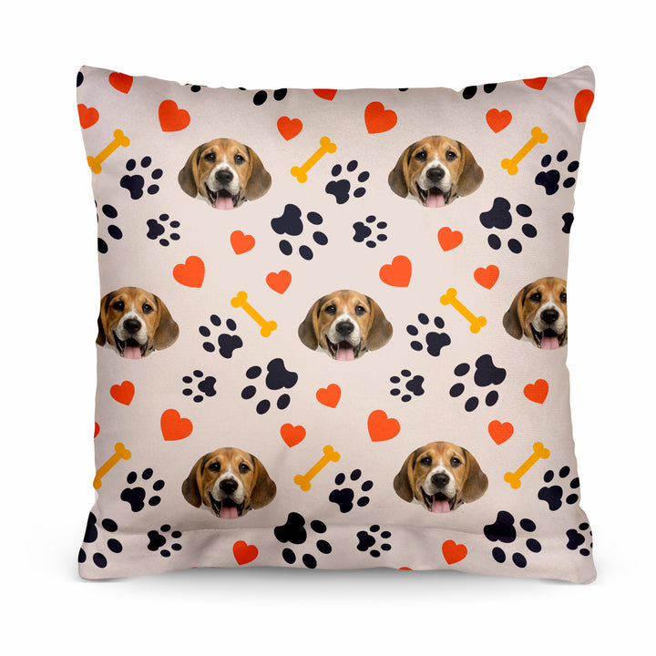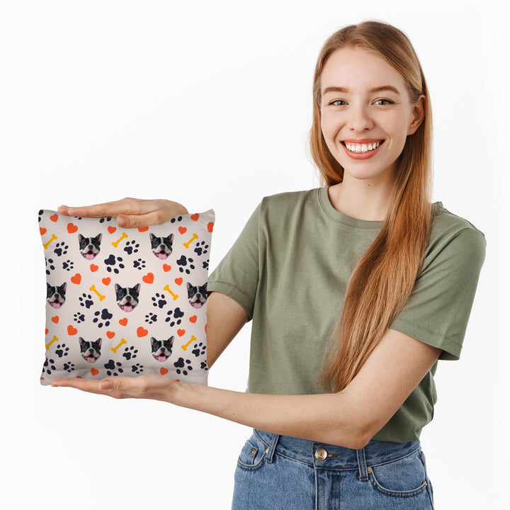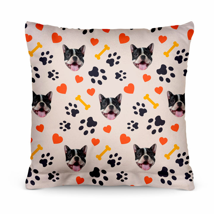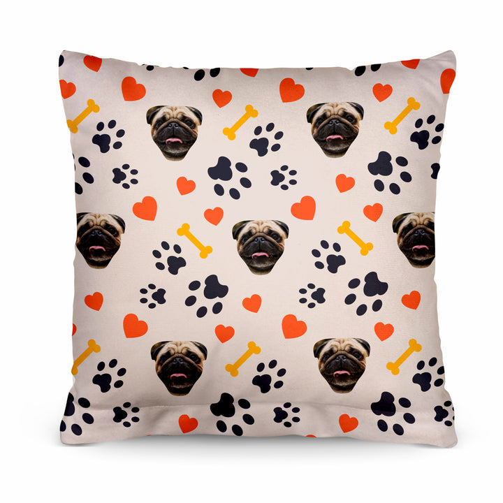 Pet Pattern - Neutral Paw & Bones - 26cm x 26cm - Personalised Cushion