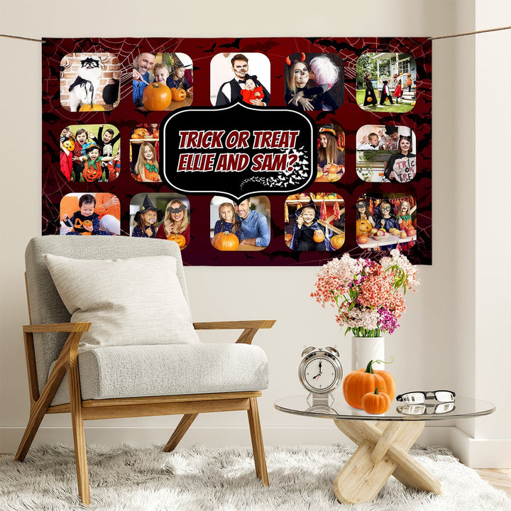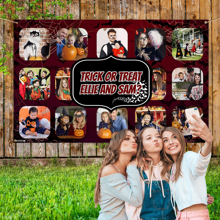 This Halloween personalised photo banner is a great addition to your upcoming Halloween party, or any other occasion! Edit the text in the centre to reflect your occasion or share a personal message and add 14 of your most cherished photos.