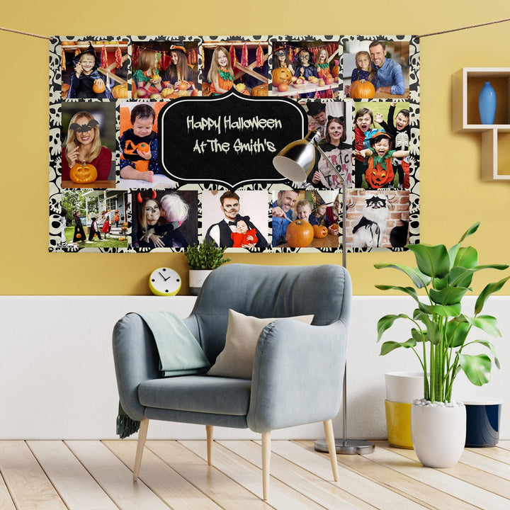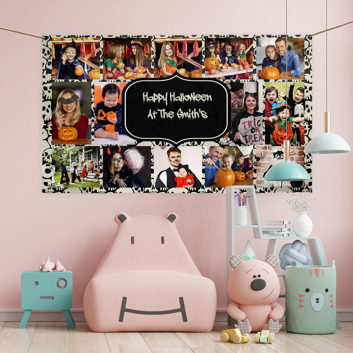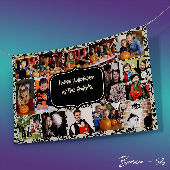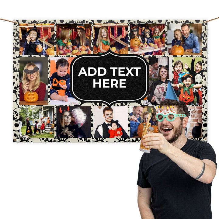This Halloween personalised photo banner is a great addition to your upcoming Halloween party, or any other occasion! Edit the text in the centre to reflect your occasion or share a personal message and add 14 of your most cherished photos.