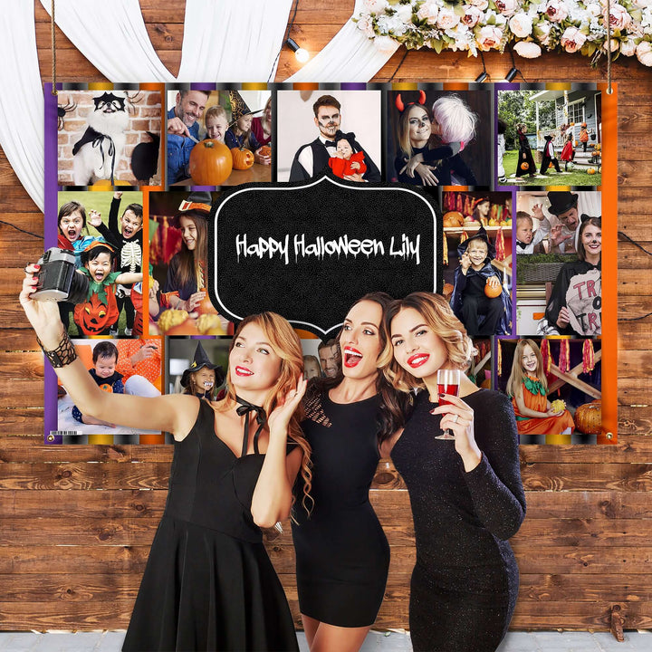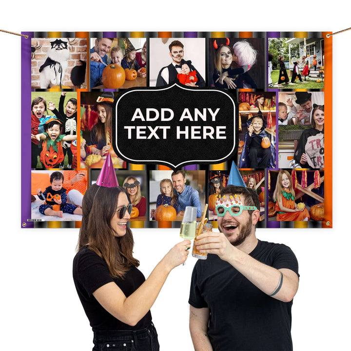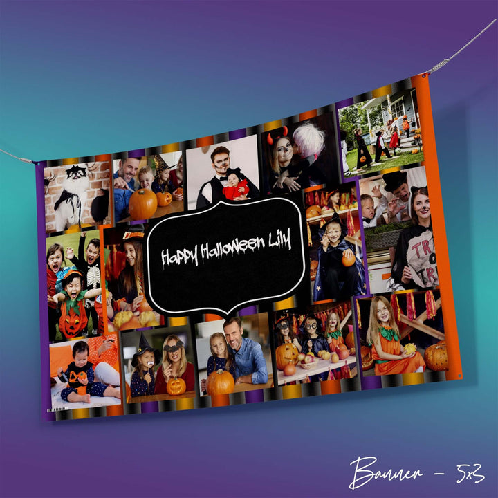 This Halloween personalised photo banner is a great addition to your upcoming Halloween party, or any other occasion! Edit the text in the centre to reflect your occasion or share a personal message and add 14 of your most cherished photos.