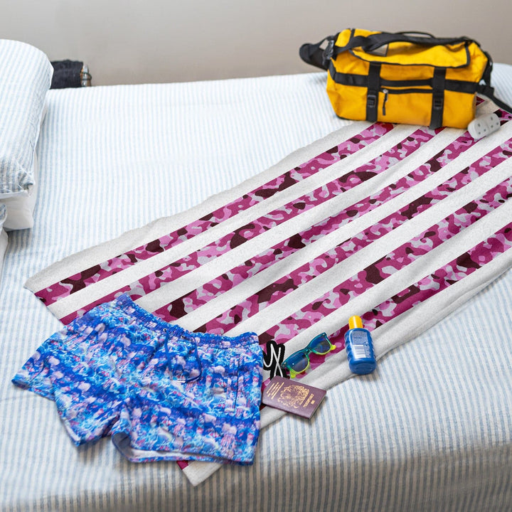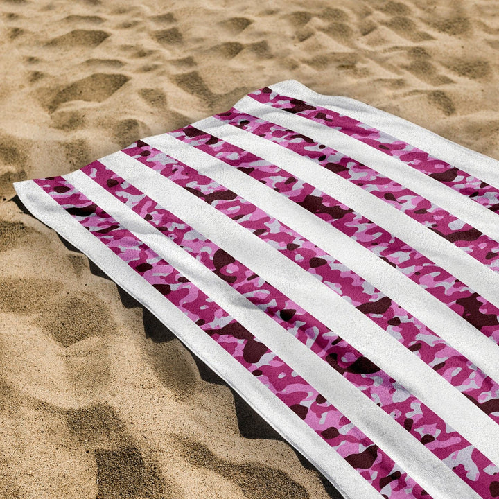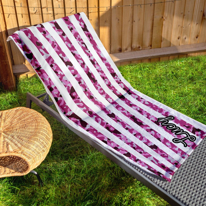 Pink Camo Stripe - Personalised Beach Towel - 150CM X 75CM