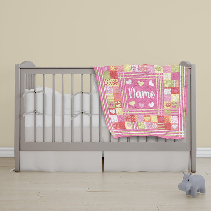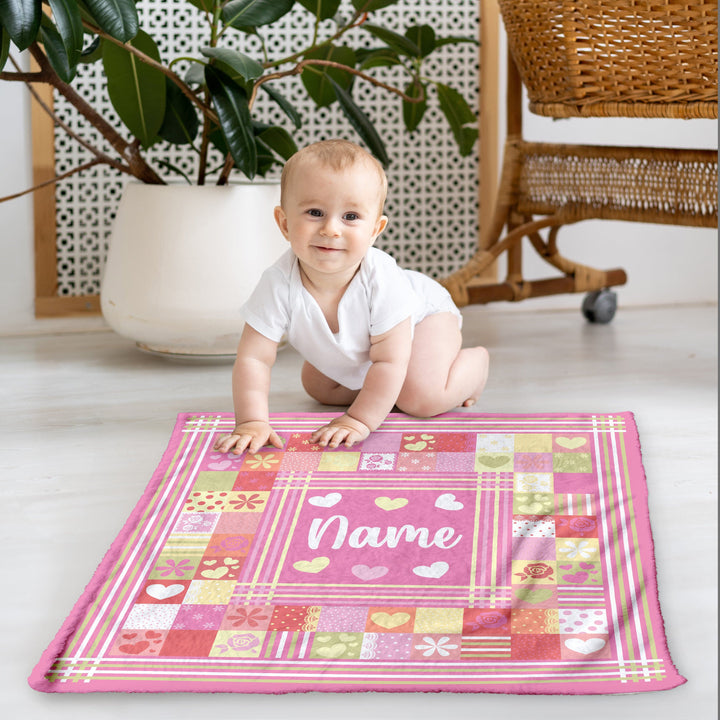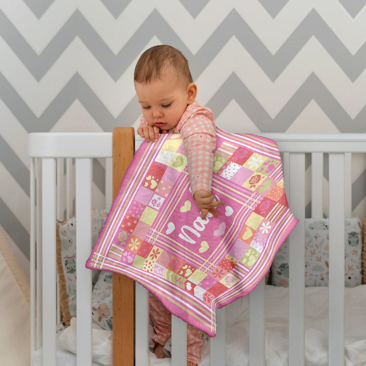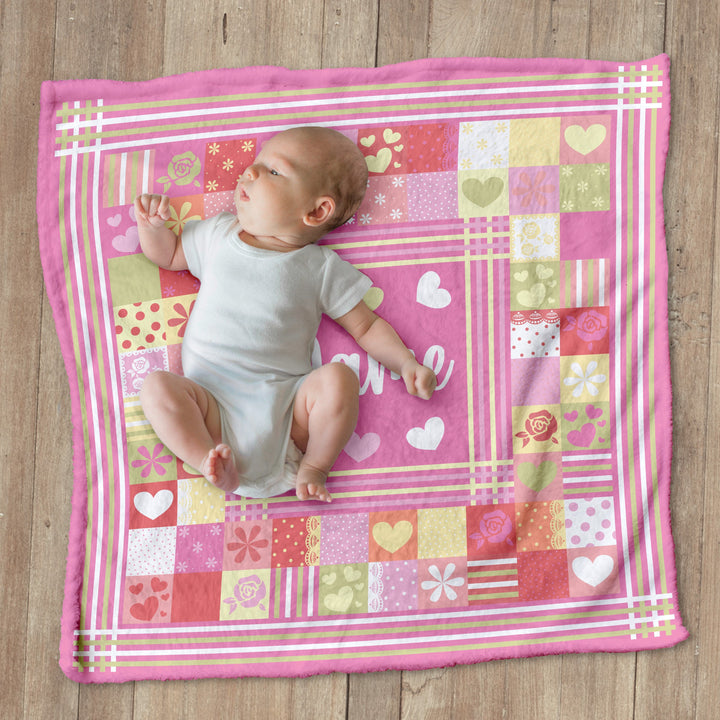 Pink Patchwork - Personalised Extra Soft Luxury Baby Blanket - 75cm x 75cm