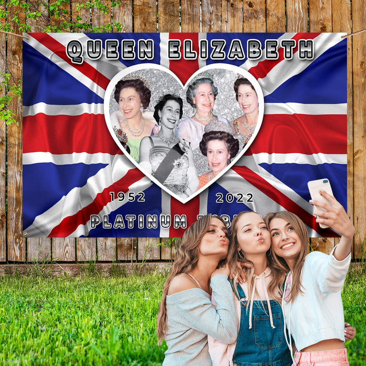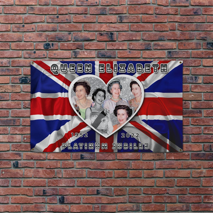 Platinum Jubilee - Queen Love Heart Flag - 5ft x 3ft Banner