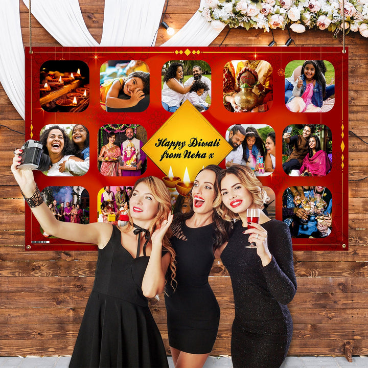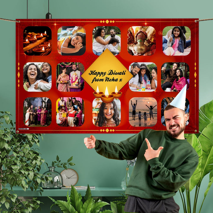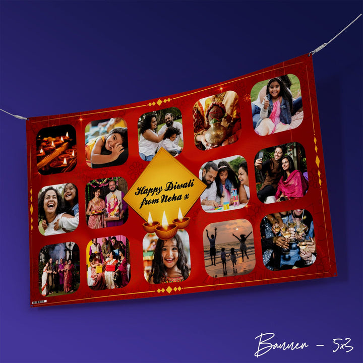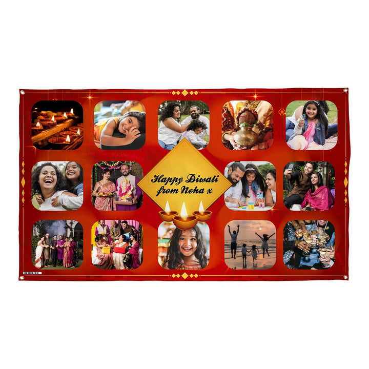 This religious themed personalised photo banner is a great addition to your upcoming Diwali party, or any other occasion! Edit the text in the centre to reflect your religious occasion or share a personal message and add 14 of your most cherished photos.