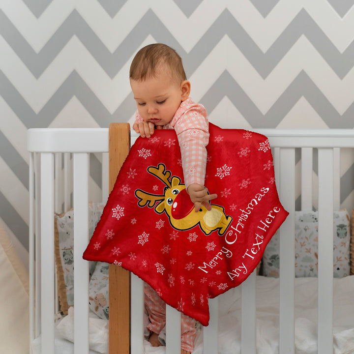 Reindeer - Personalised Extra Soft Luxury Baby Blanket - 75cm x 75cm