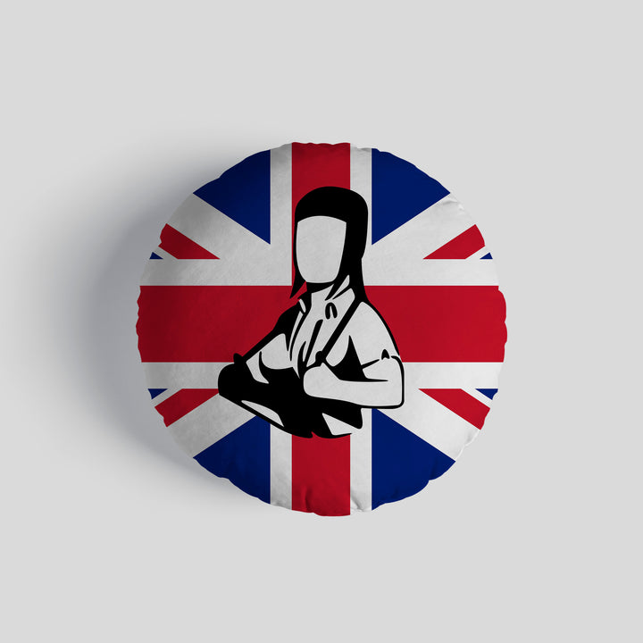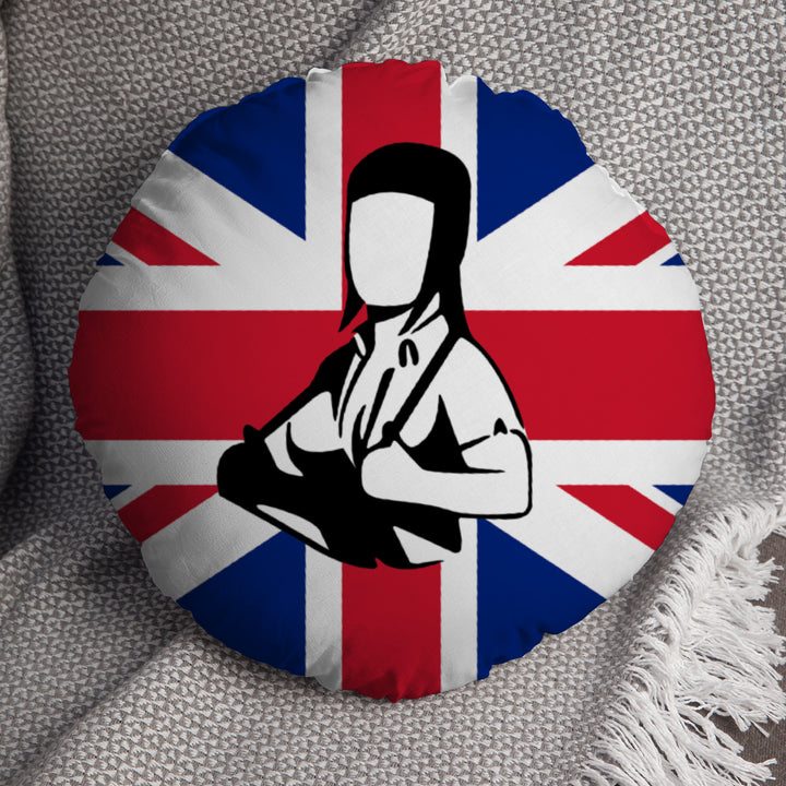 Skinhead Girl Union Jack 14" Round Throw Cushion