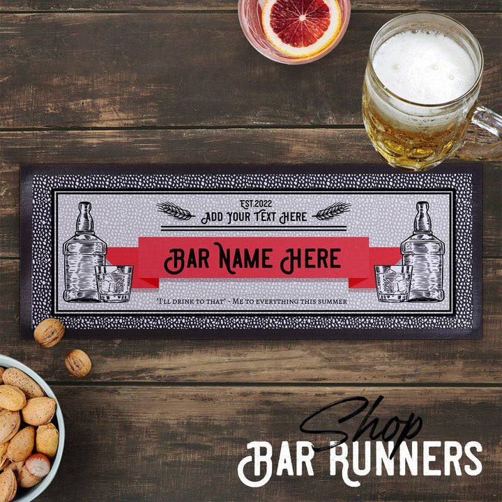 Our personalised bar runners are ideal for multiple purposes and venues. Personalise with your bar or pub name or add that extra personalised touch to a special occasion.
