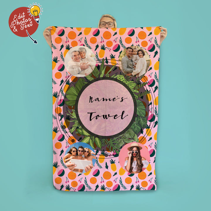 Tropical Fruits- Pink - Large Lightweight, Microfibre Beach Towel