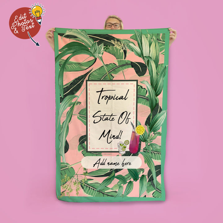 Tropical State Of Mind - Pink - Large Lightweight, Microfibre Beach Towel