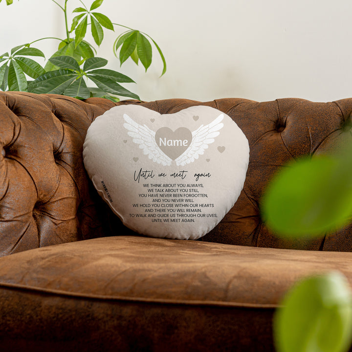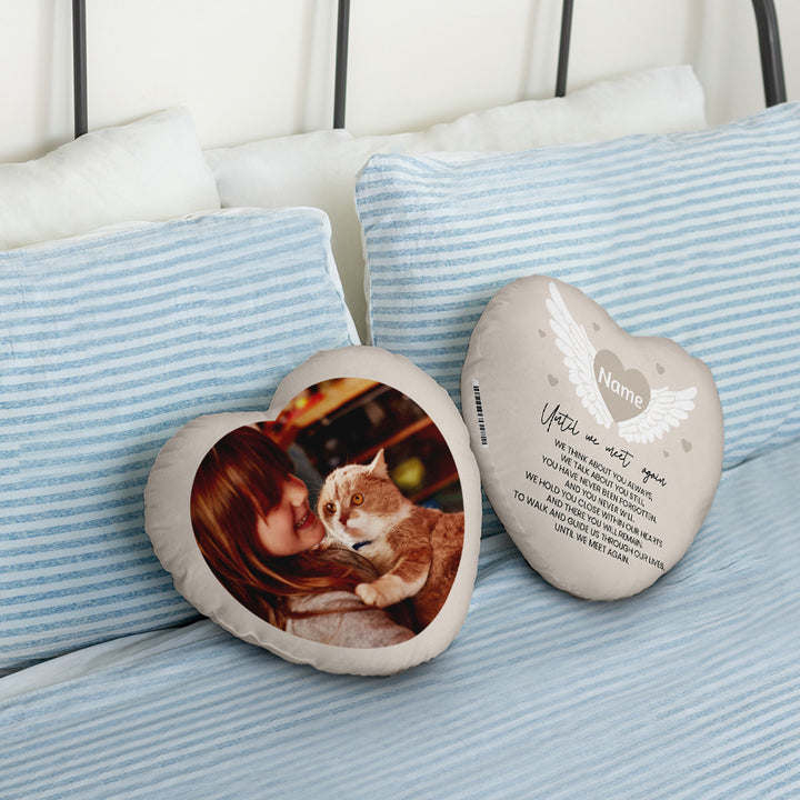 Until We Meet Again - Heart Shaped Personalised Photo Memory Cushion