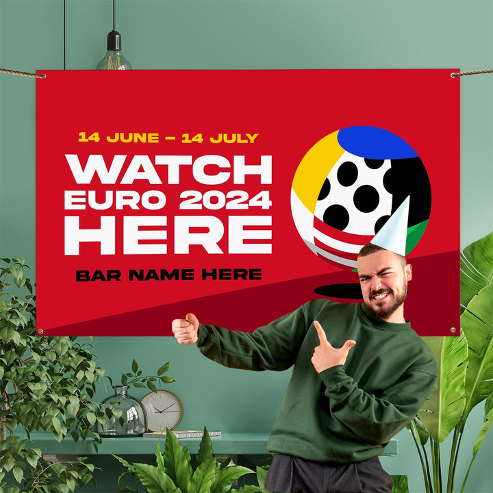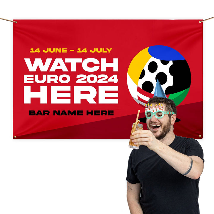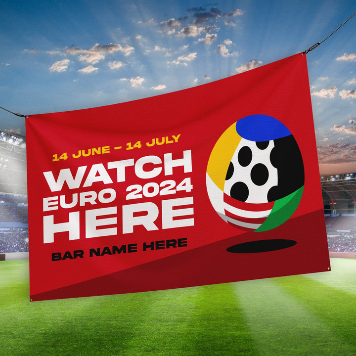 Watch The Euros Here - Red and White - Personalised 5ft x 3ft Fabric Banner