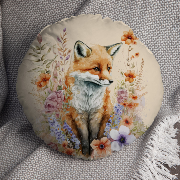 Watercolour Woodland Fox 14" Round Throw Cushion
