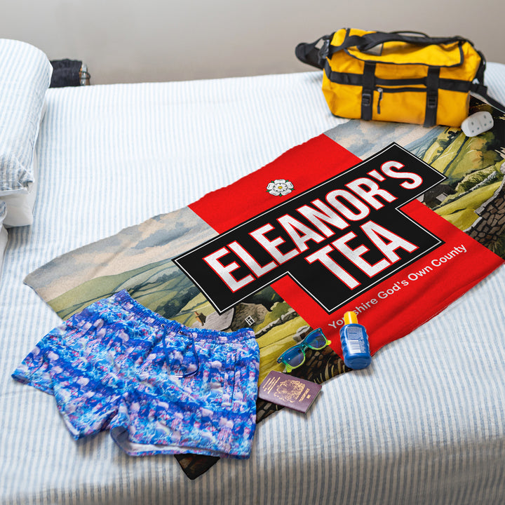 Our personalised beach towels are printed one sided, edge to edge and hand sewn for a quality finish. They are designed, printed, and manufactured to order in Yorkshire, England. We use dye sublimation to ensure a vibrant, high-quality print.