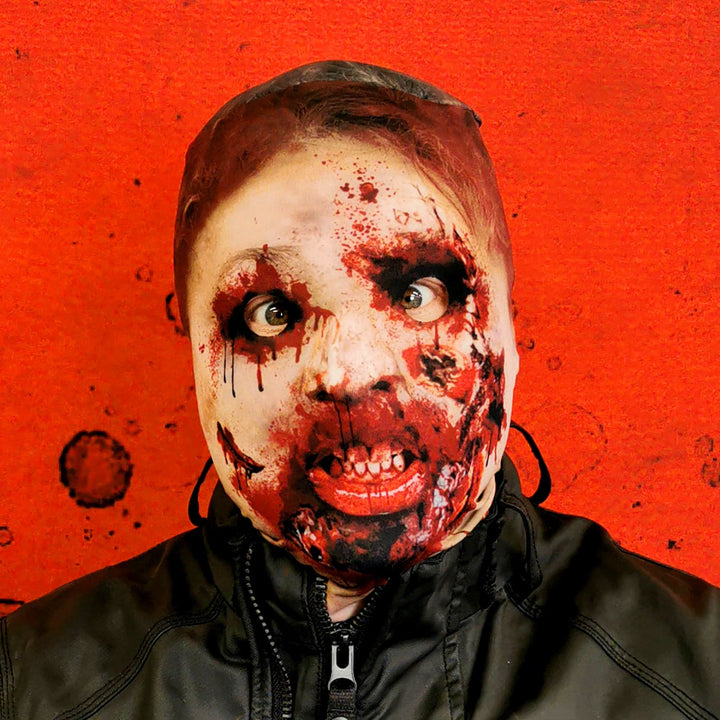 Faceskinz cover the whole of the head and face with a sewn in top making you totally unrecognisable, they also look fantastic when worn with wigs, hats, hoodies, contact lenses or other props. They fold into your pocket so you can easily tranform into your chosen horror character whenever you wish.