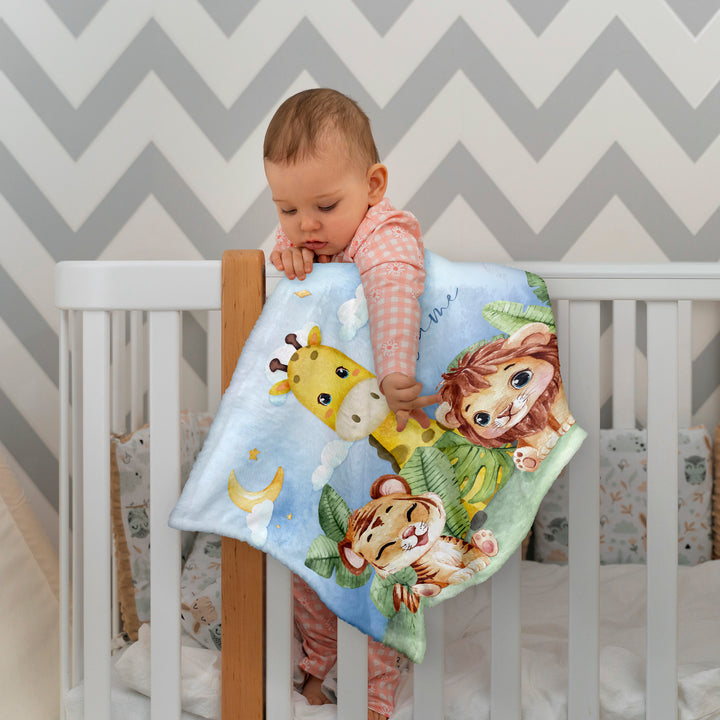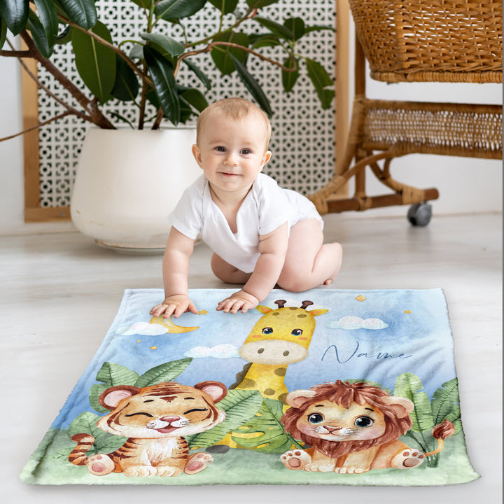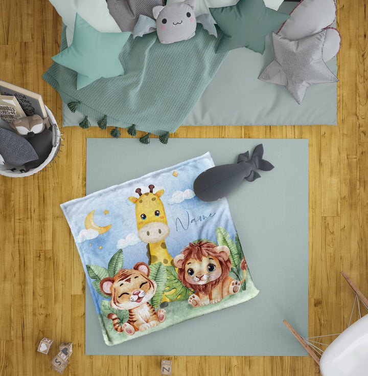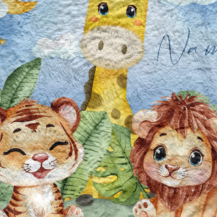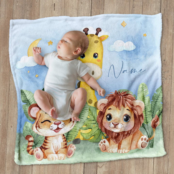 Zoo Friends - Personalised Extra Soft Luxury Baby Blanket - 75cm x 75cm
